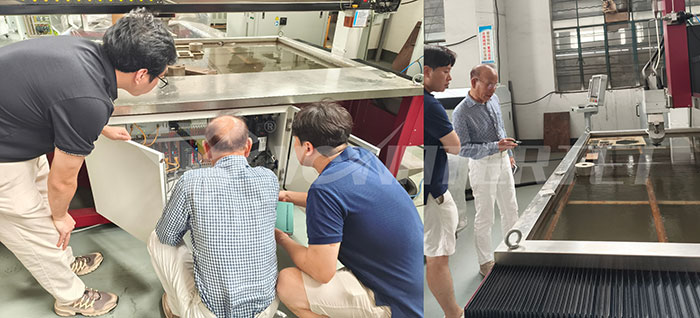 韓國(guó)客戶所在企業(yè)深耕金屬、玻璃纖維、各類特種玻璃(包括強(qiáng)化玻璃、機(jī)械窗玻璃等)及石材的水刀加工服務(wù)與零件銷售。此次參觀工廠,他們尤為關(guān)注永昌設(shè)備在加工其核心產(chǎn)品——機(jī)械特種玻璃時(shí)的表現(xiàn)。在實(shí)地考察和切割演示環(huán)節(jié),永昌水刀設(shè)備展現(xiàn)出令人矚目的±0.1mm超高精度、完美的復(fù)雜曲面切割能力,以及加工后邊緣光滑無(wú)微裂紋的卓越效果,完美契合了他們對(duì)高品控的要求。客戶在觀摩后表示:“永昌設(shè)備在加工高脆性、高硬度的機(jī)械窗玻璃時(shí)所展現(xiàn)的穩(wěn)定性和精度遠(yuǎn)超我們預(yù)期,這將顯著提升我們工廠的加工質(zhì)量和市場(chǎng)競(jìng)爭(zhēng)力。”