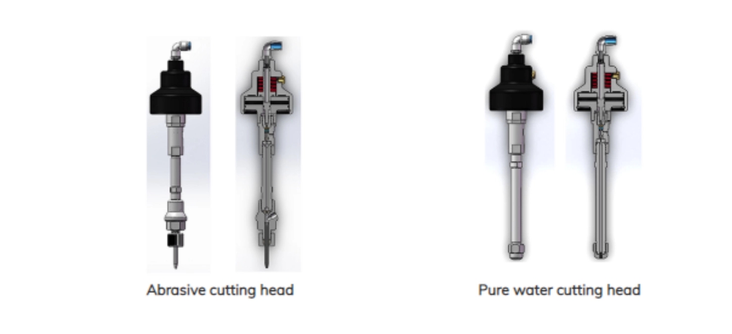 超高壓水刀主要分為磨料切割和純水切割。因此,切割頭也分為磨料水刀切割頭和純水刀切割頭。