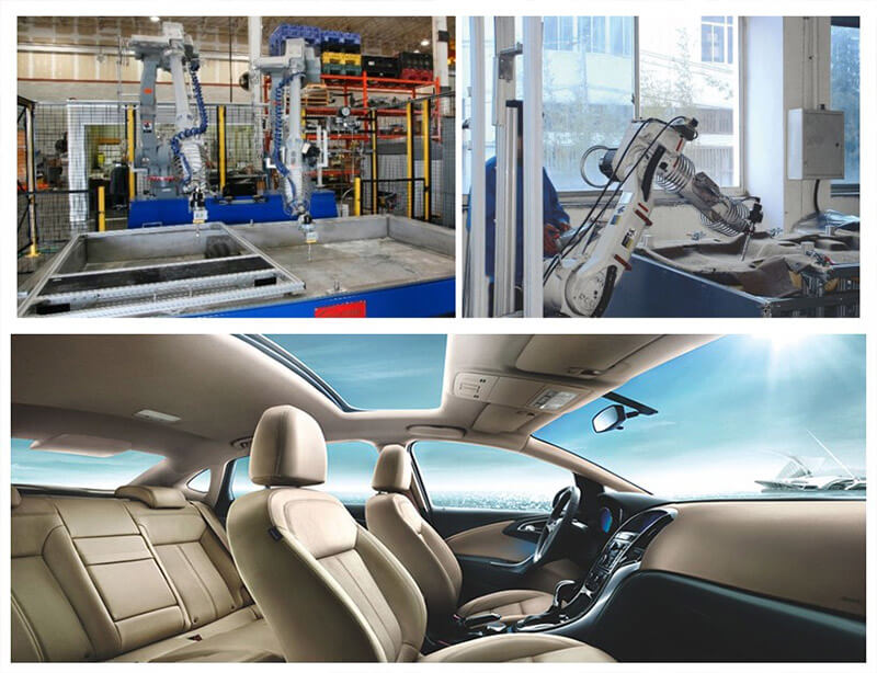 機器人水射流切割系統與磨料切割系列相比具有更快的切削速度。 適用于切割塑料、人造板、泡沫等,特別適用于汽車內飾件制造,機器人水射流切割機系統是汽車頂棚和地毯加工的良好解決方案。