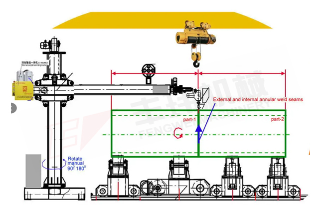 自動校準的焊接旋轉器由一組主動焊接旋轉器和一組被動焊接旋轉器組成。動作輪由電機和減速齒輪驅動,實現無級變速。如果工件過長,可以采用一主多被動組合。