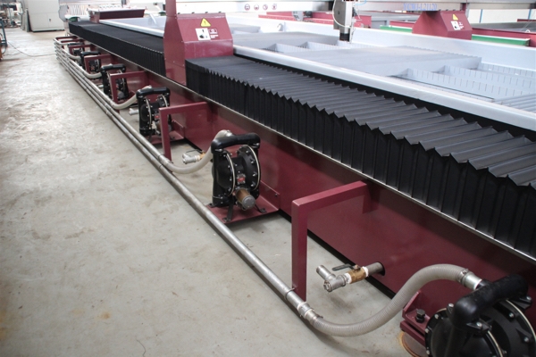 本水射流切割機配有排泥系統,可自動將槽內的磨料清除,使磨料與水分離,減少勞動力,提高工作效率。