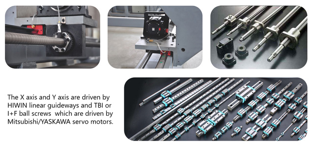X軸和Y軸采用HIWIN或I+F滾珠絲杠和導(dǎo)軌;我們采用伺服電機(jī)驅(qū)動(dòng) 三菱或安川 | |||||||