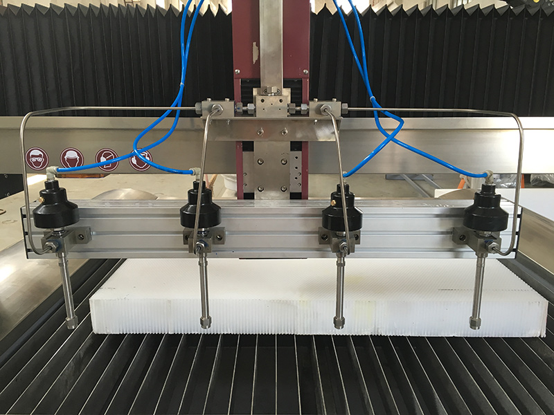 4刀頭純水切割對于加工密封器件,布料,汽車內飾物品的效率在原有單刀頭基礎上得到了較大的改善與提高,相對于單刀頭純水切割效率上提升了400%;使純水刀領域得到了大大的提升,更加完善產品的工作效率。